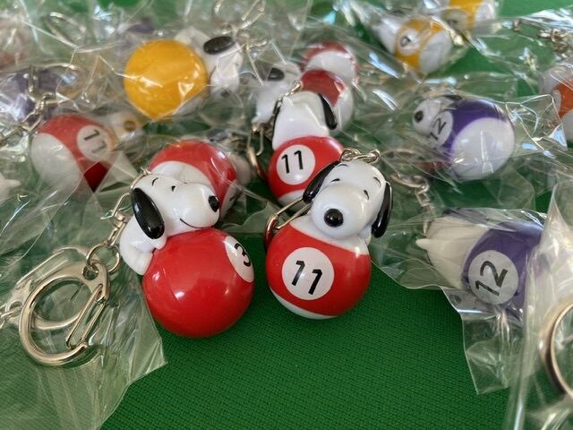 ビリヤードボールの上にスヌーピーの乗った可愛いキーホルダーです。